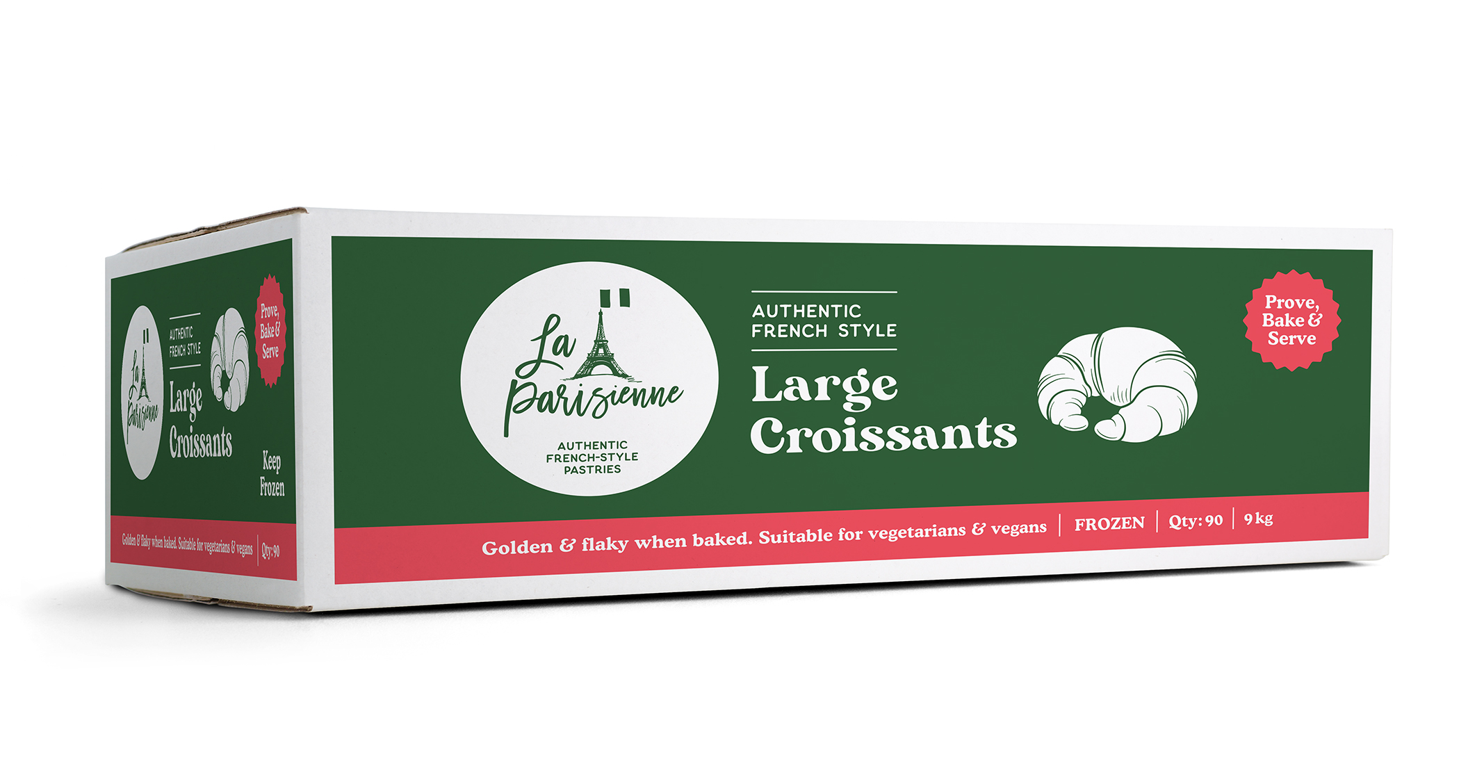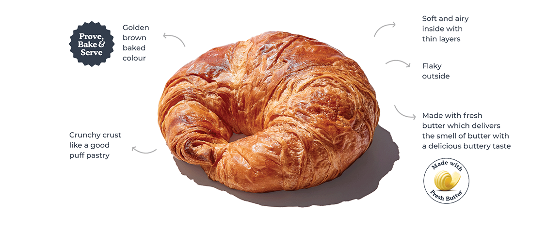 With absolute lashings of butter and delightfully crispy, La Parisienne French-style croissants have a golden brown crunchy crust on the outside, and are soft, airy and flaky on the inside. With both a delicious buttery smell and melt in your mouth taste these croissants are simple to bake from frozen. Just place in a proving oven, or let them rise overnight and then bake for that delicious wafting buttery smell that your customers will love.